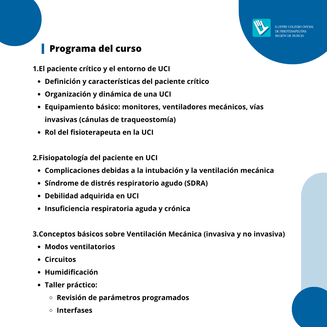 - Fisioterapeuta del Servicio Murciano de Salud, adscrito al Servicio de Medicina Intensiva del Hospital General Universitario Santa Lucía (Cartagena)